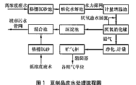 高濃度廢水經酸化水解—厭氧消化後(hòu),出水與低濃度廢水混合,泵(bèng)入城市排汙管網。具(jù)體工藝流程(chéng)見圖1。